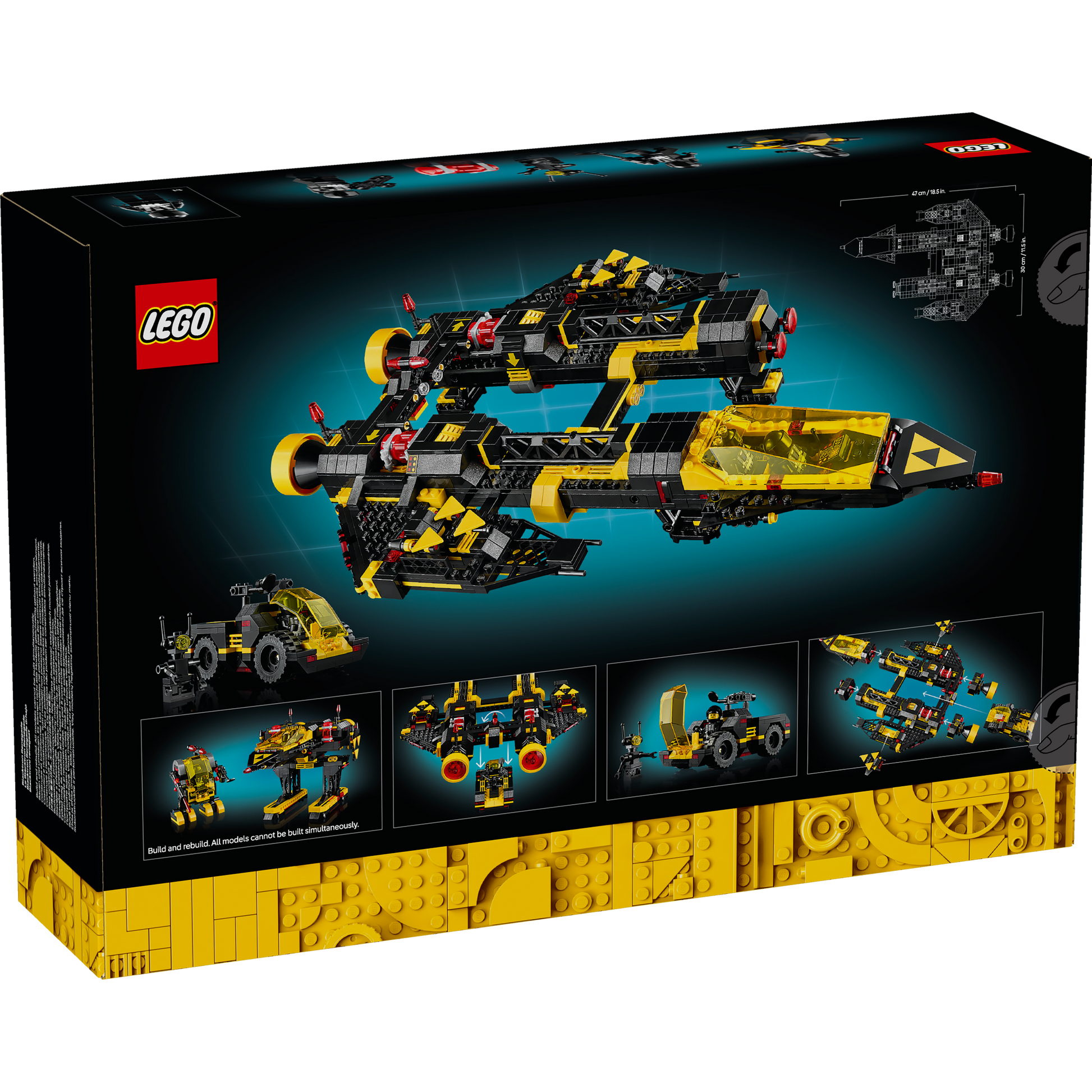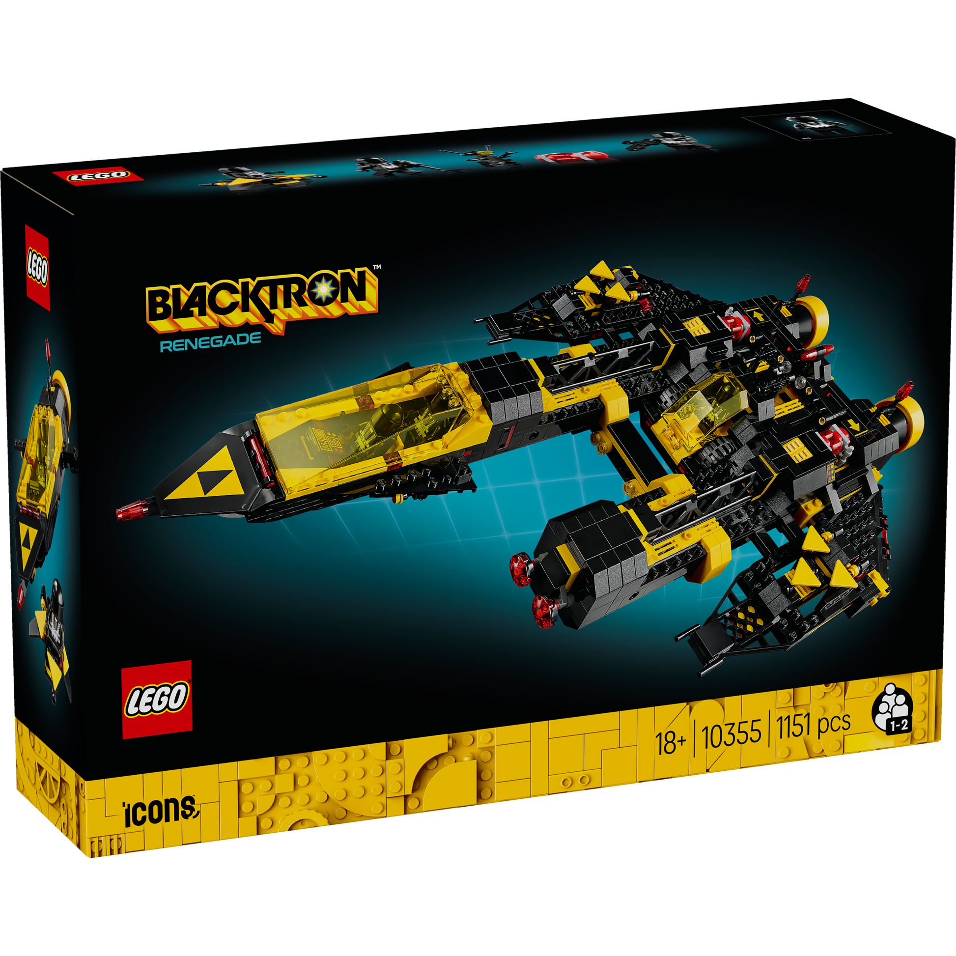 - Rebuild into the Alienator – Includes a printed guide for the Blacktron Renegade and 3D instructions in the LEGO® Builder app where you can learn how to rebuild it into the 1980s Blacktron Alienator