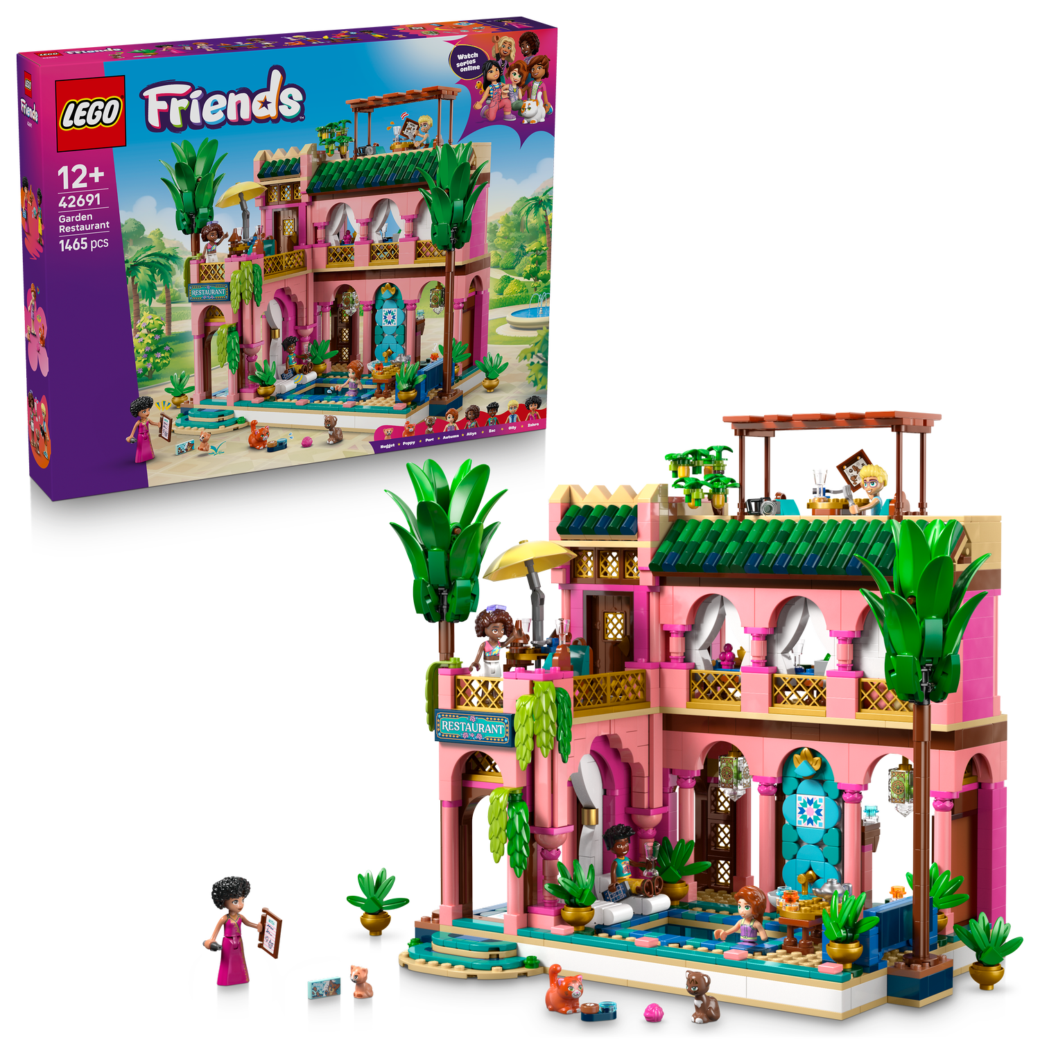 - 5 LEGO® FRIENDS CHARACTERS – The LEGO Friends Garden Restaurant (42691) includes Zahra, Aliya, Autumn, Zac and Olly minidolls, and 3 cat figures, so kids can create a model to play with and display