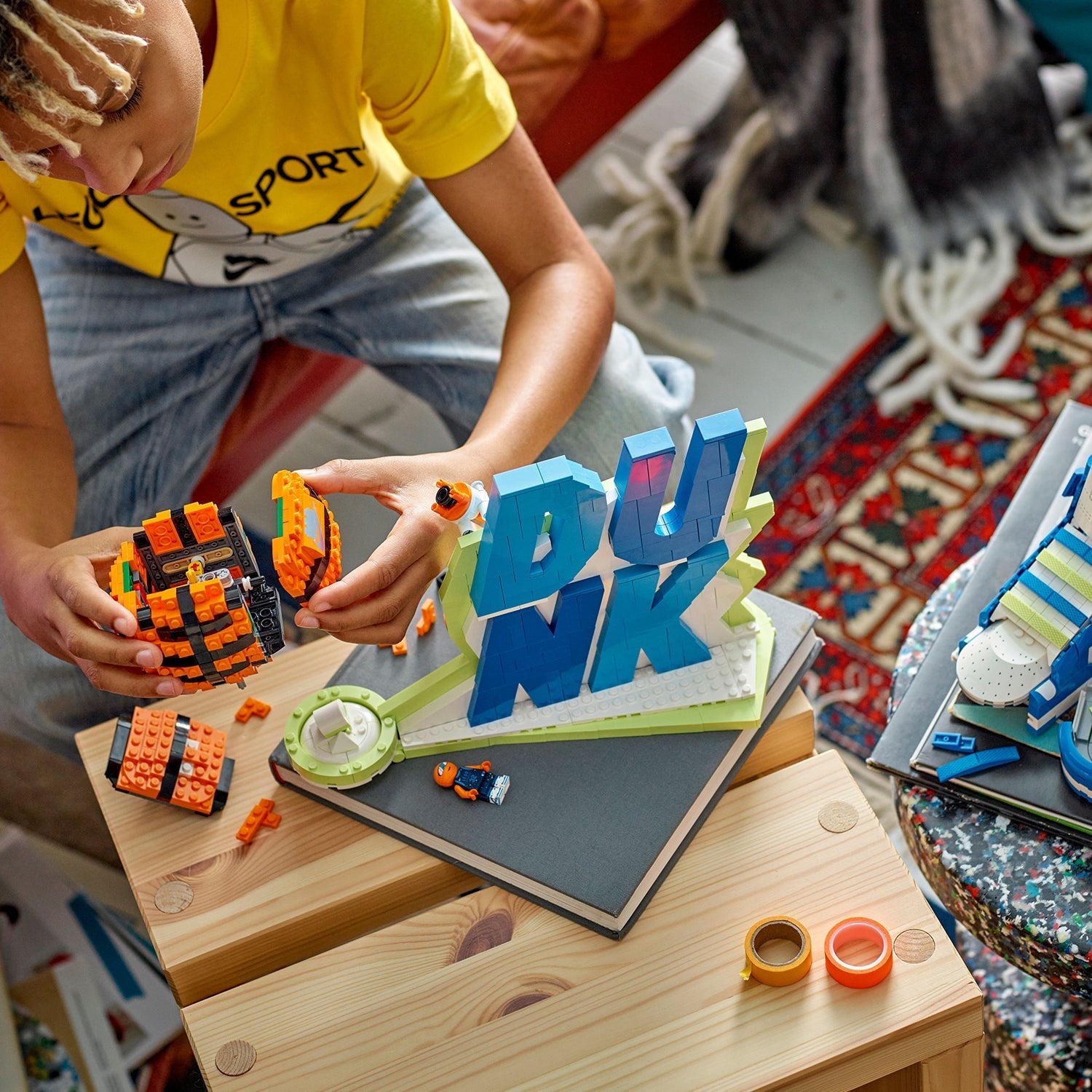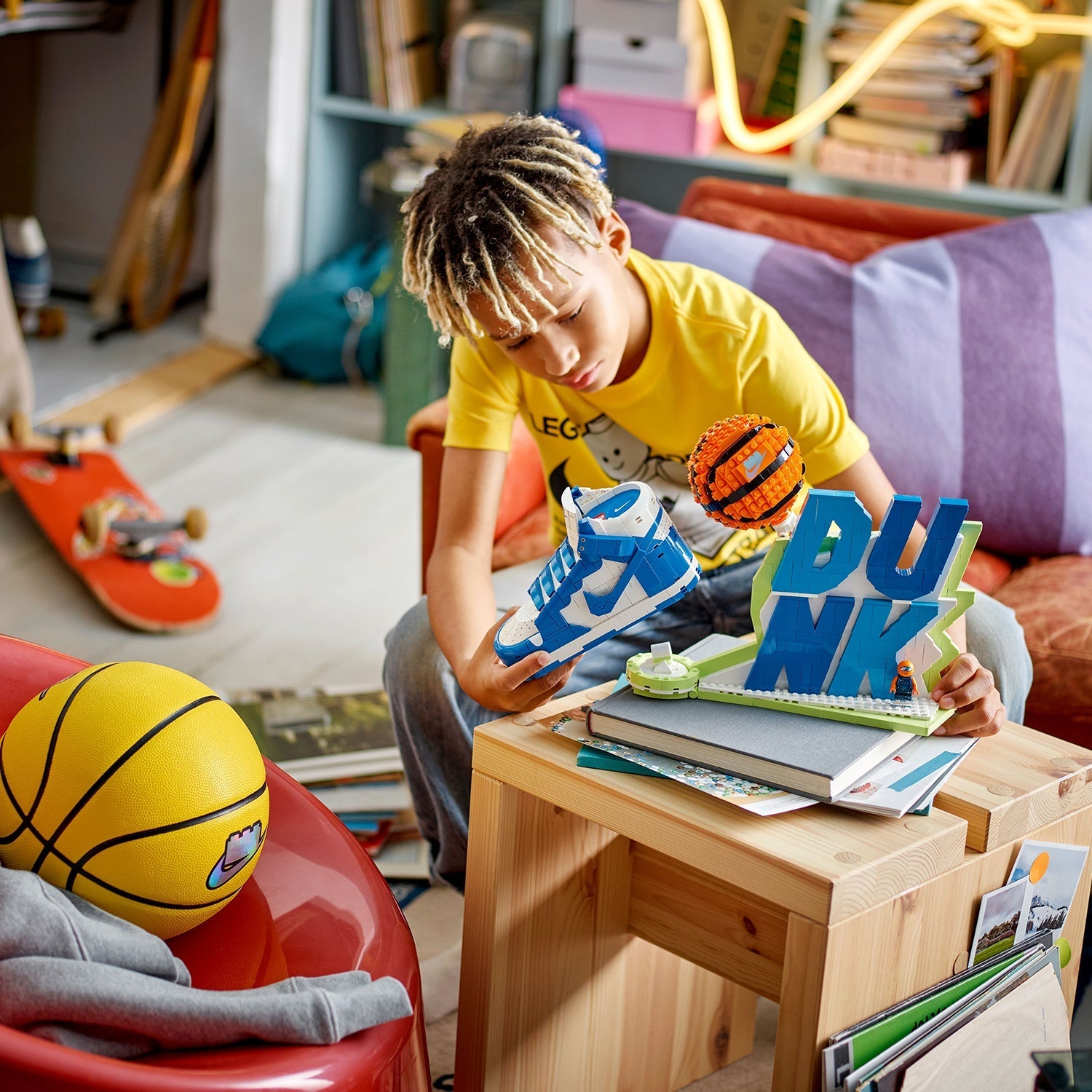 Collectible, customisable and full of basketball attitude, the collectible model is set to become one of the hottest trainer drops of the year. The set features a Nike Dunk, rotatable brick basketball toy and iconic “Dunk” slogan that sports fans can build, rebuild and display. Hidden within the Nike Dunk model are stash compartments to safely store championship rings or other essentials, as well as extra laces for custom colour swap-outs. Accompanying the build is super fan B’Ball Head – an exclusive minifigure that rocks its own Nike drip and some mini Nike Dunks that match the iconic build.