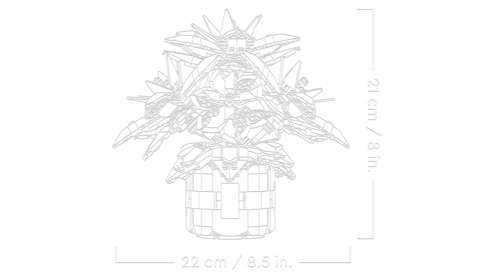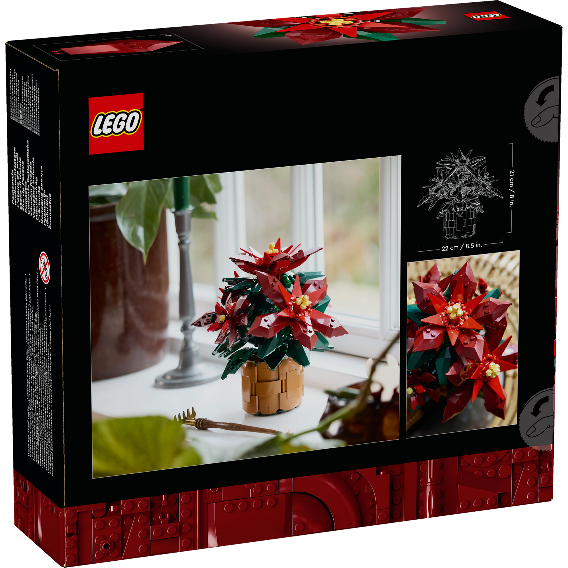 - Dimensions –The poinsettia plant, including the flowerpot, in this 608-piece building set measures over 8 in. (21 cm) high, 8.5 in. (22 cm) wide and 6.5 in. (17 cm) deep