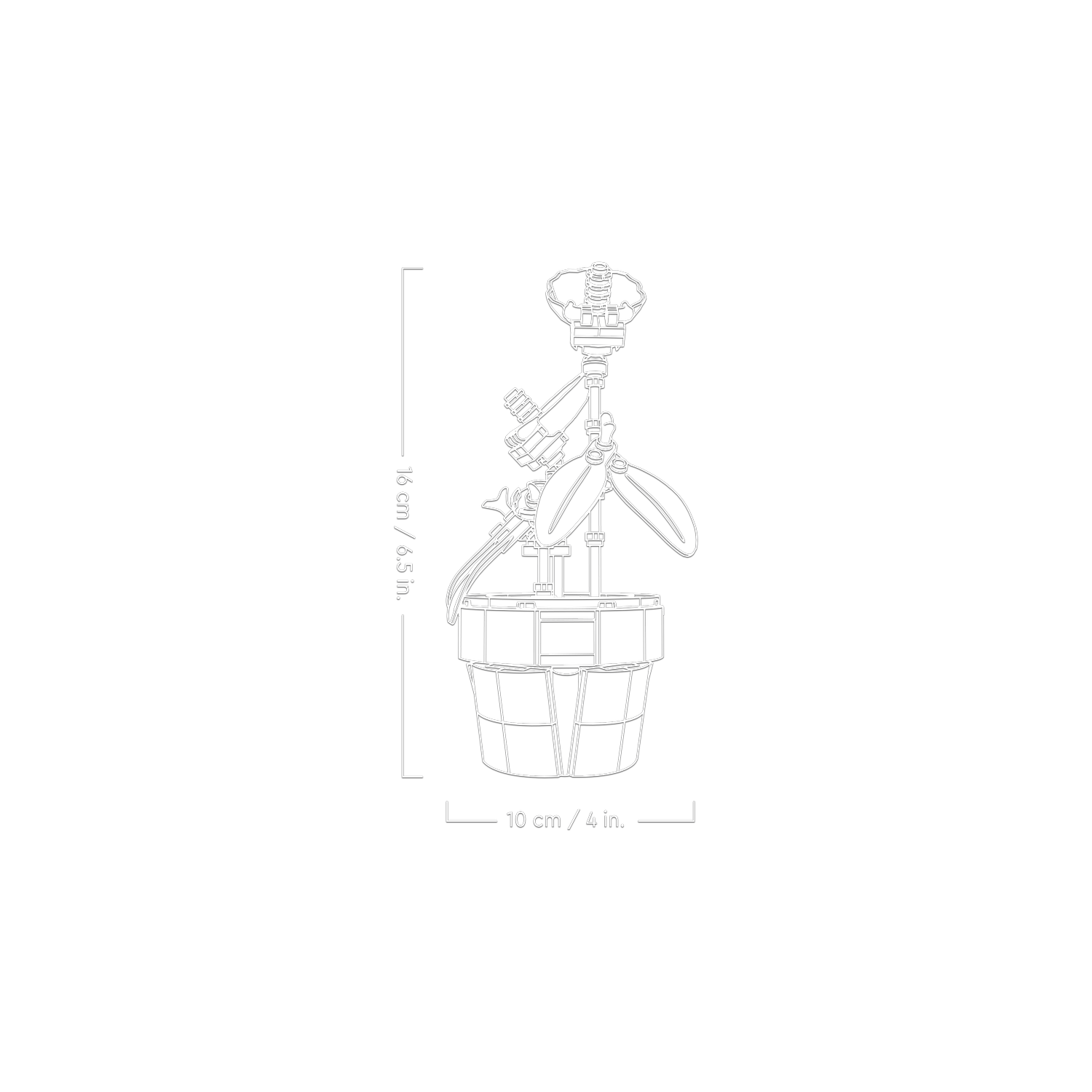 - Dimensions – The tallest plant in this 758-piece building set (including its container), measures over 16 cm (6.5 in.) high, 10 cm (4 in.) wide and 6 cm (2.5 in.) deep